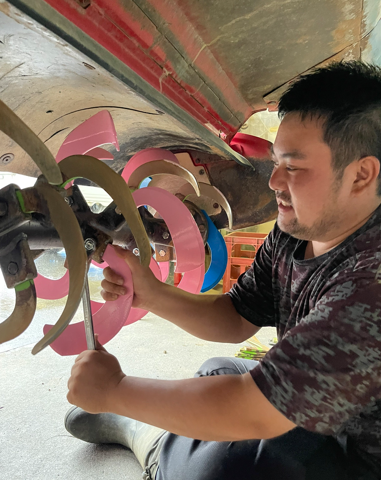 トラクターは、オペレーターが乗車する運転席と、取り外し可能な作業機の大きく二つに分かれていて、各作業に対応した作業機をその都度に取り付けて作業します。